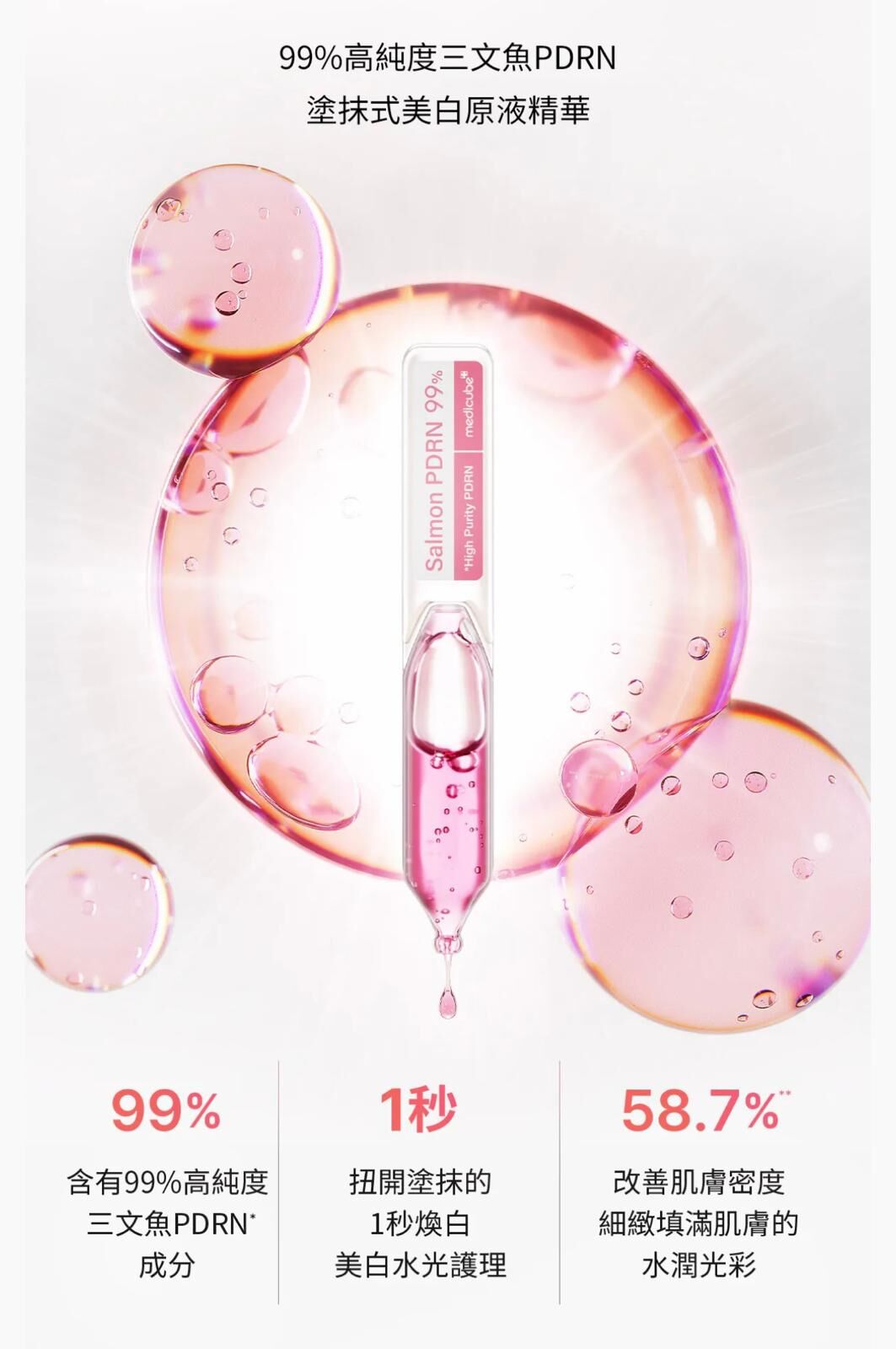 99%高純度三文魚PDRN原液在最新鮮的狀態下塗抹,
