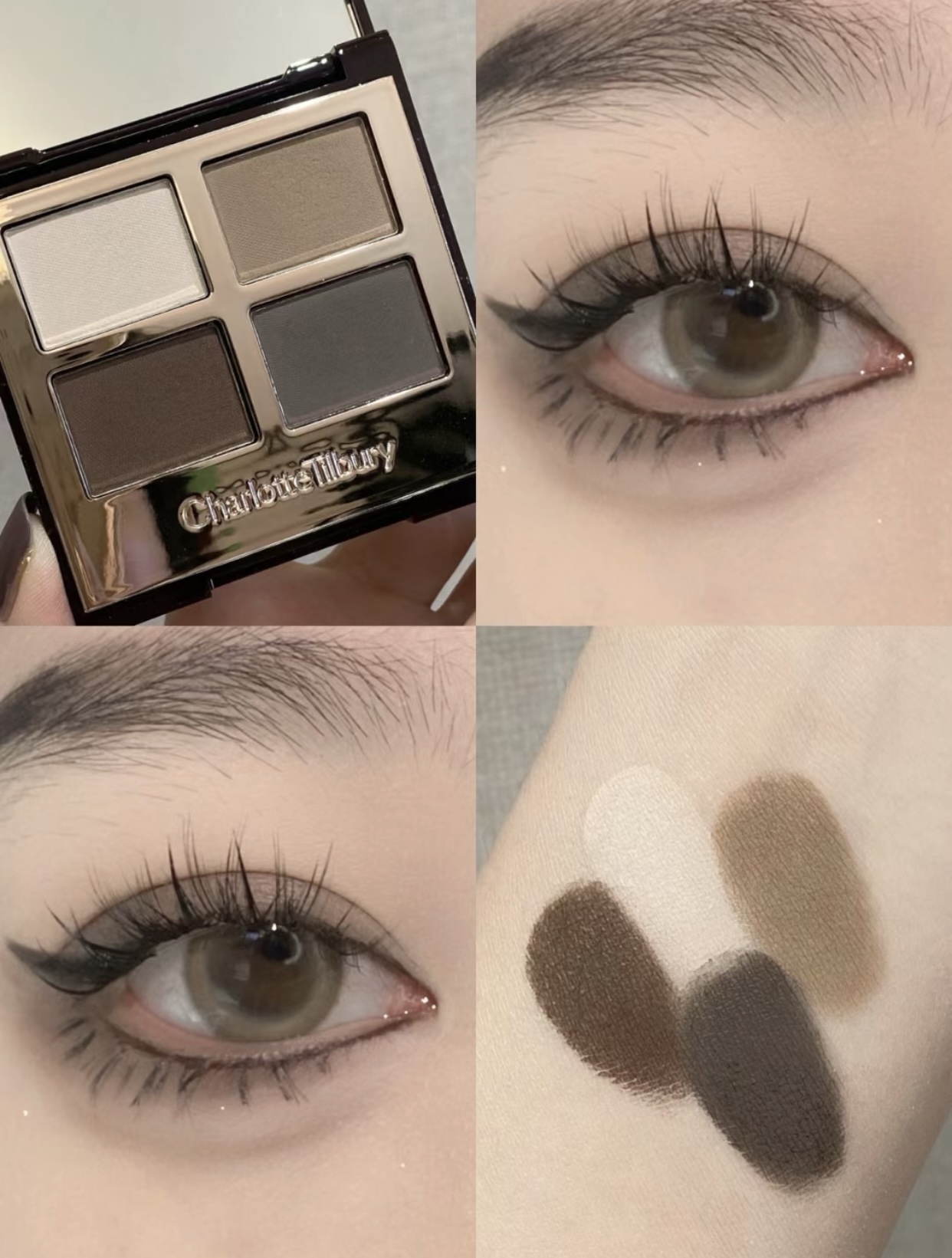 啞光眼影盤有奶油色、棕褐色、灰褐色和巧克力色