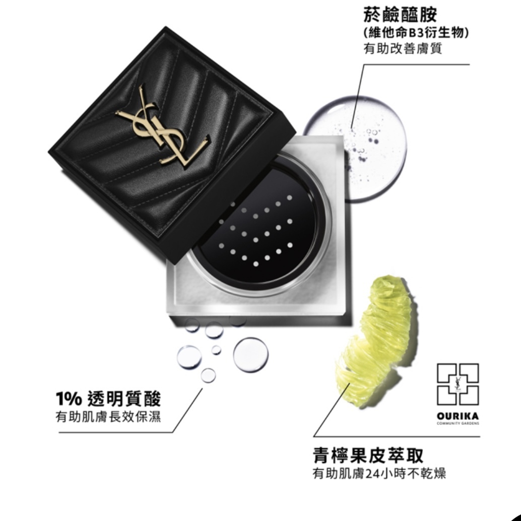 質感如空氣般輕透無重,絲滑粉末瞬間平滑肌膚與毛孔,猶如柔焦濾鏡般妝效。與粉底使用,有效控油持妝並令妝容更細緻貼服